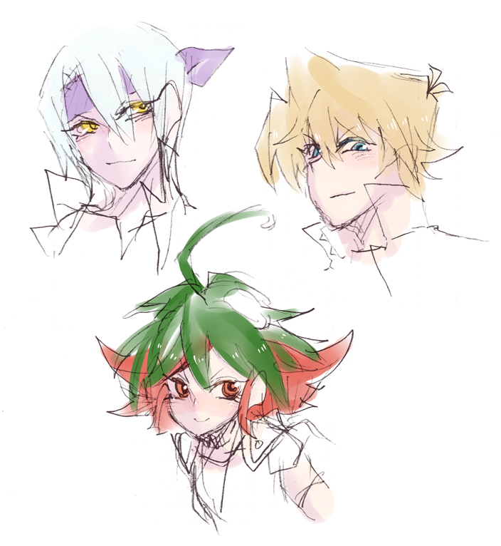 城之内克也17歳!!榊遊矢14歳!!(CV.エロペンギン)って脳内で連呼しながら片手間に落書きしたやつに適当に色載せた アナログは描けない